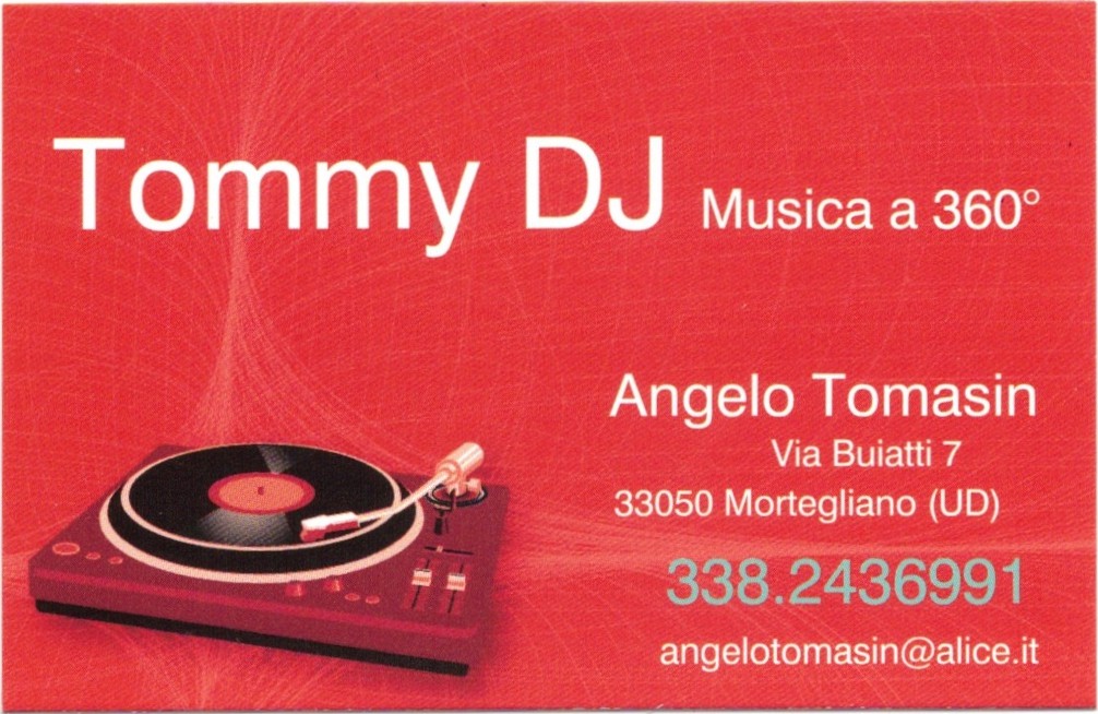 Dal Rock’n’roll all’ Heavy Metal, dalla Disco Music alla Dance, dal Chill Out alla Lounge, dalle colonne sonore allo Swing/Jazz, dai cantautori italiani al Rock internazionale con Dj Tommy ogni vostra richiesta verrà soddisfatta con professionalità e passione per il proprio lavoro.